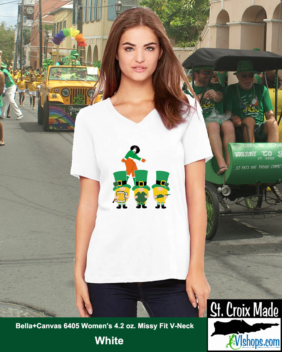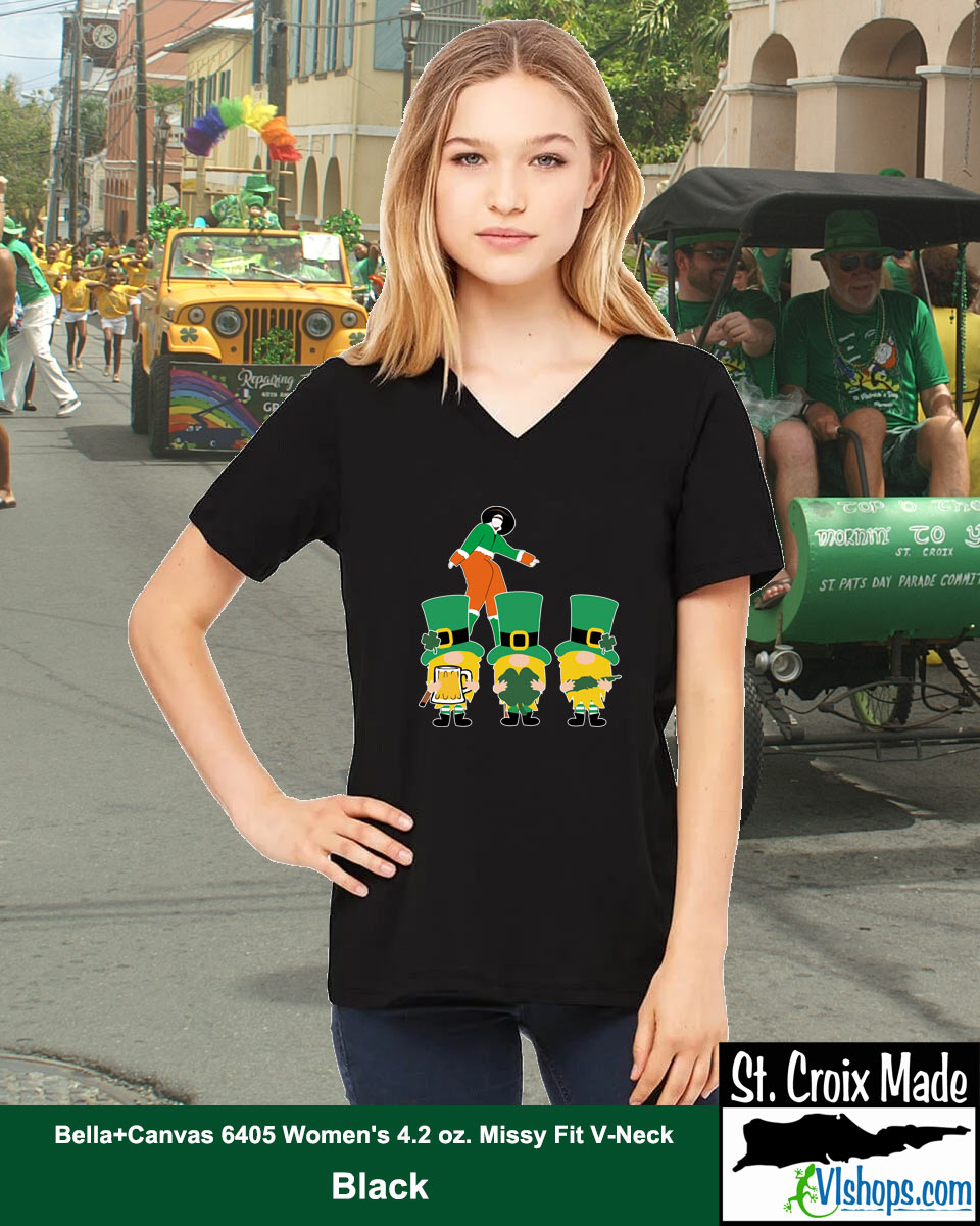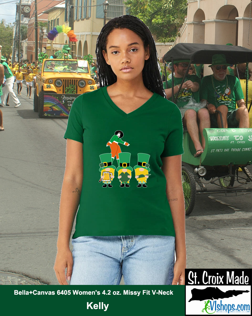 3 Gnomes and Moko Jumbie - St Patricks Day - Bella + Canvas 6405 Women's 4.2 oz. Missy Fit V-Neck