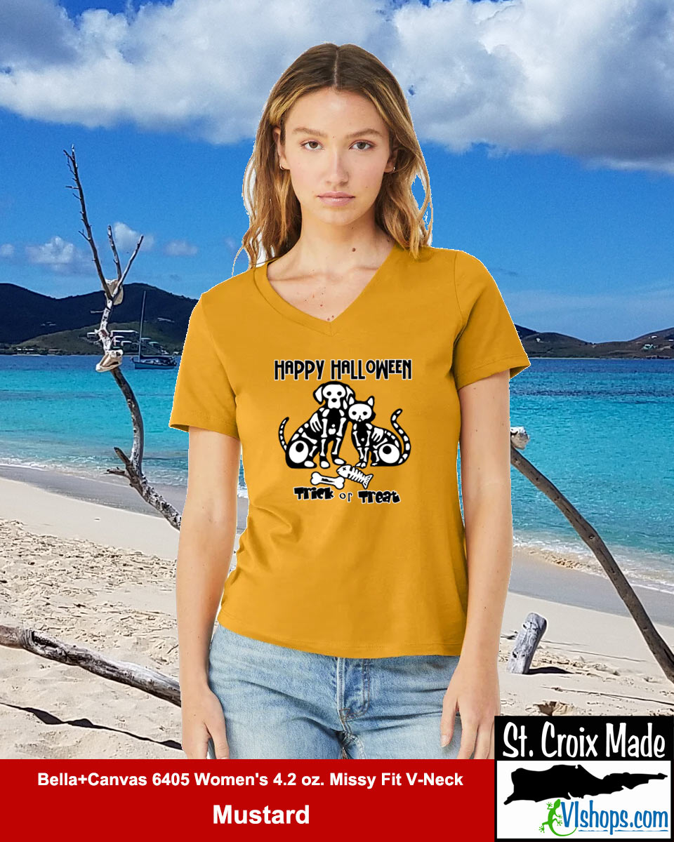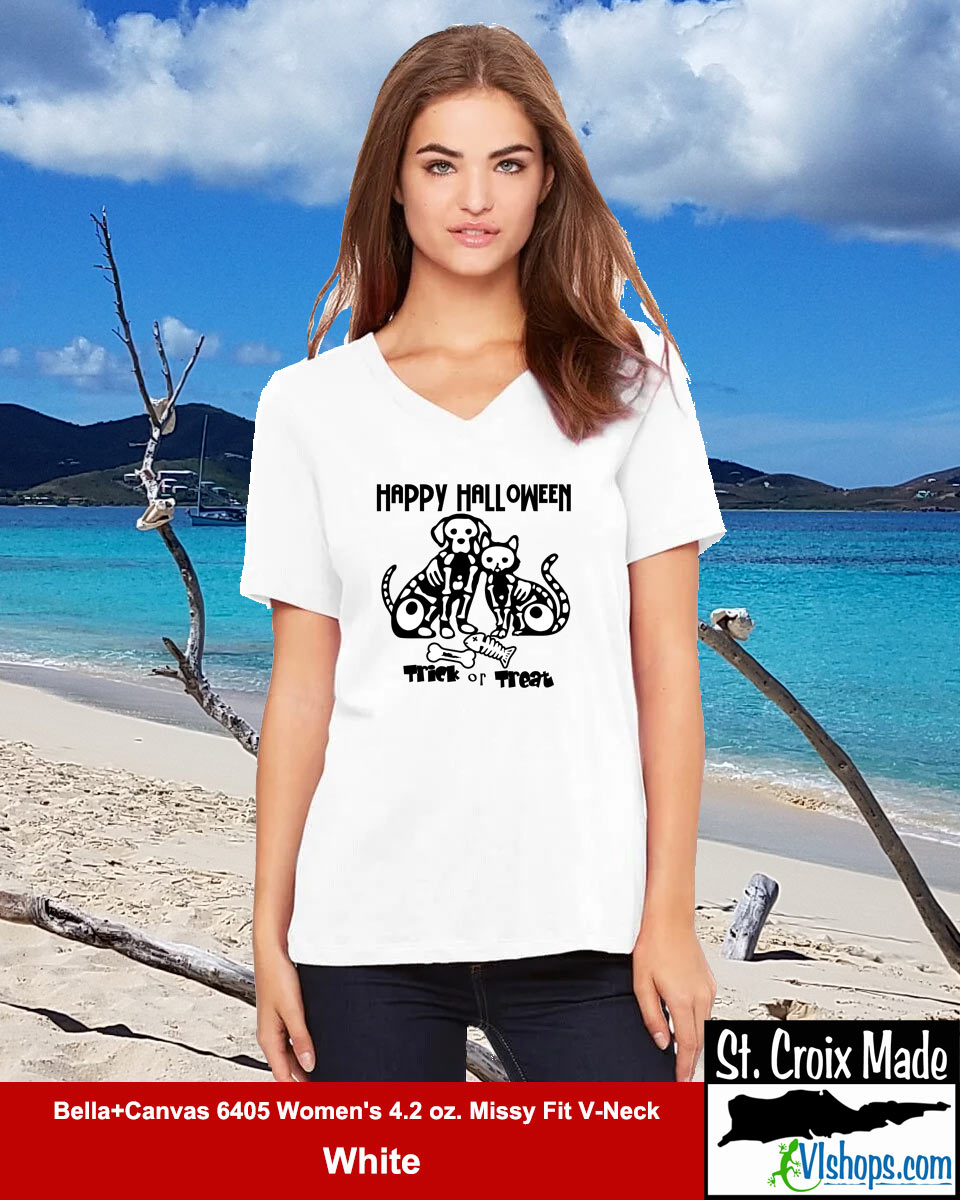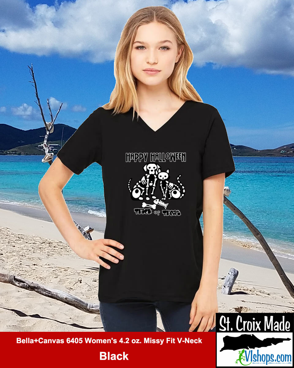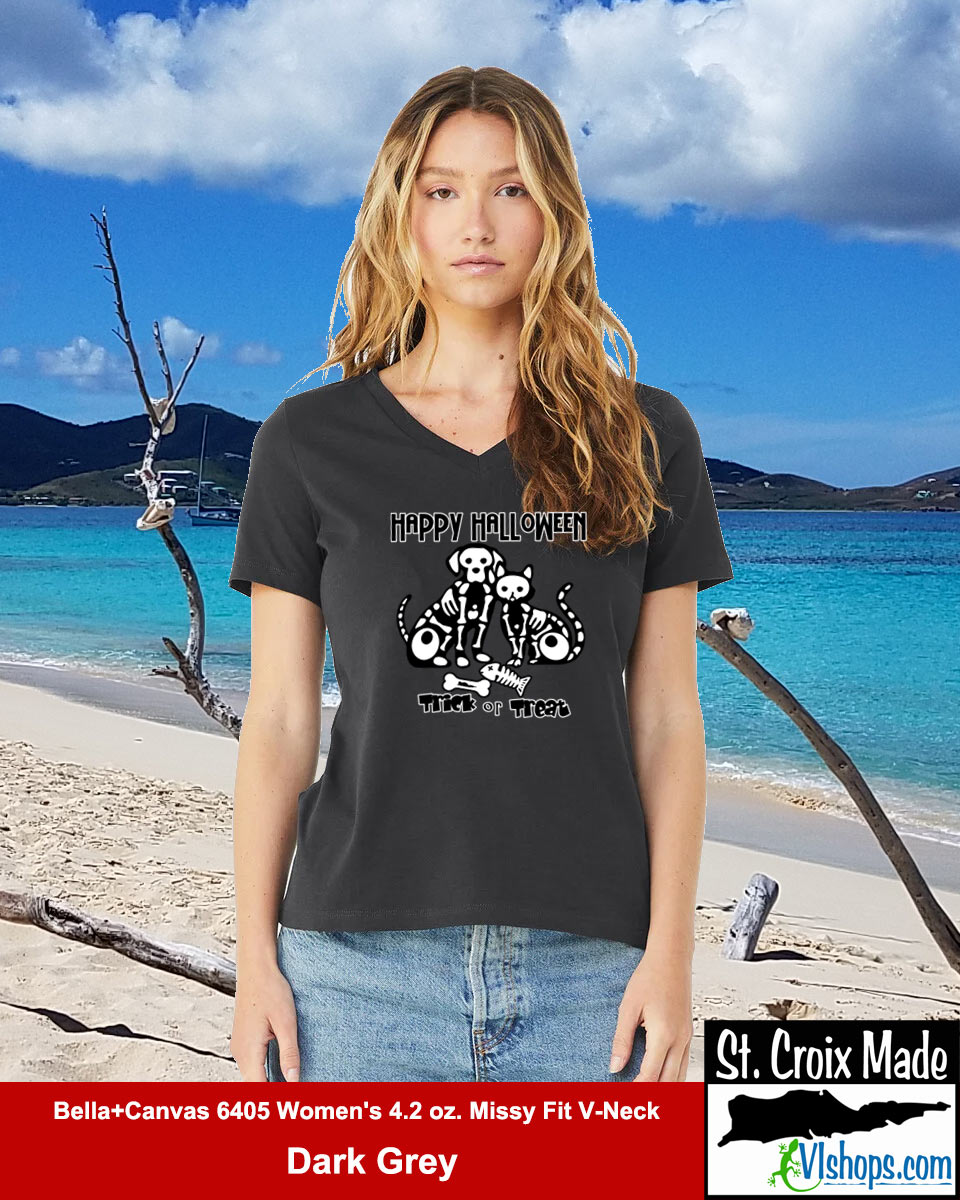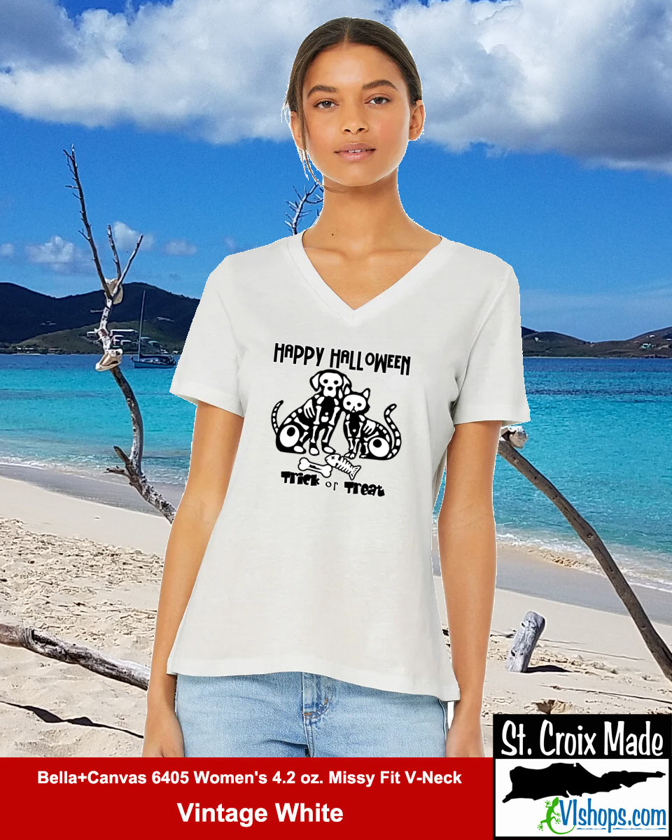 Dog and Cat Skeletons - Halloween - Bella + Canvas 6405 Women's 4.2 oz. Missy Fit V-Neck