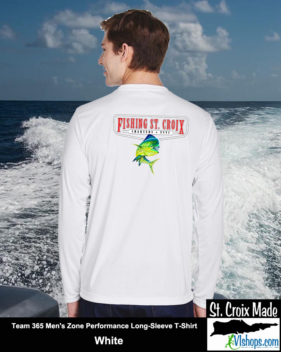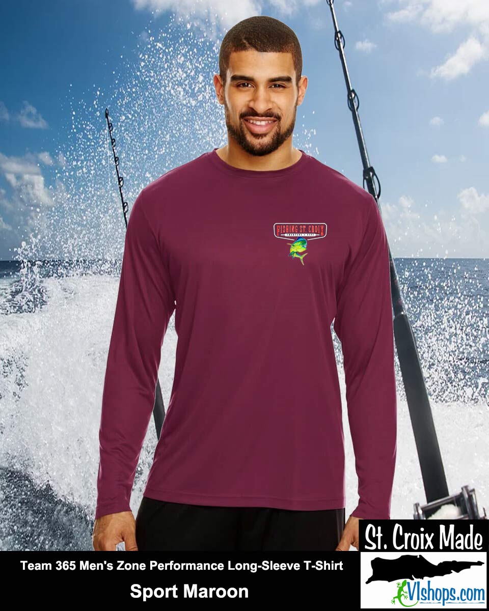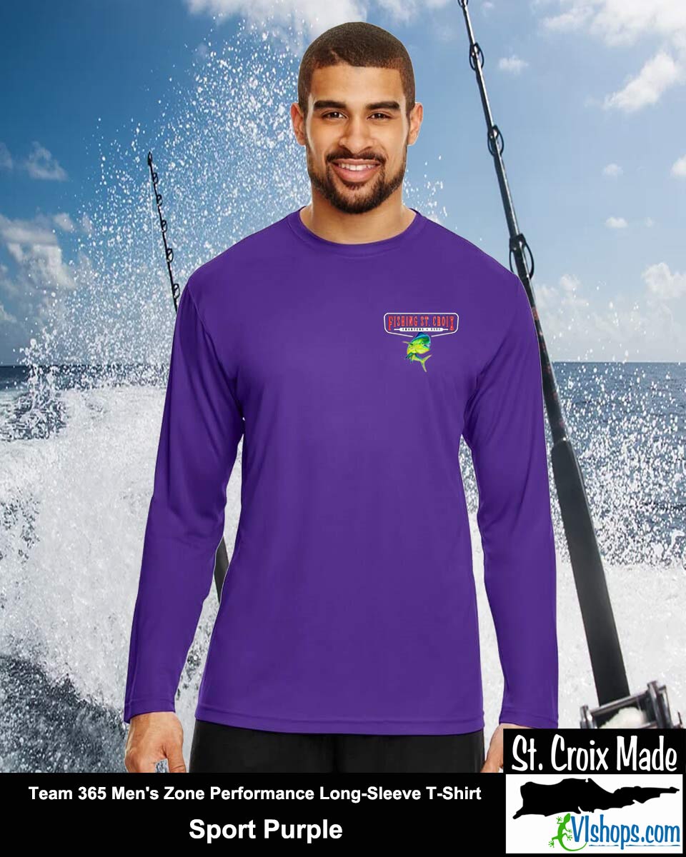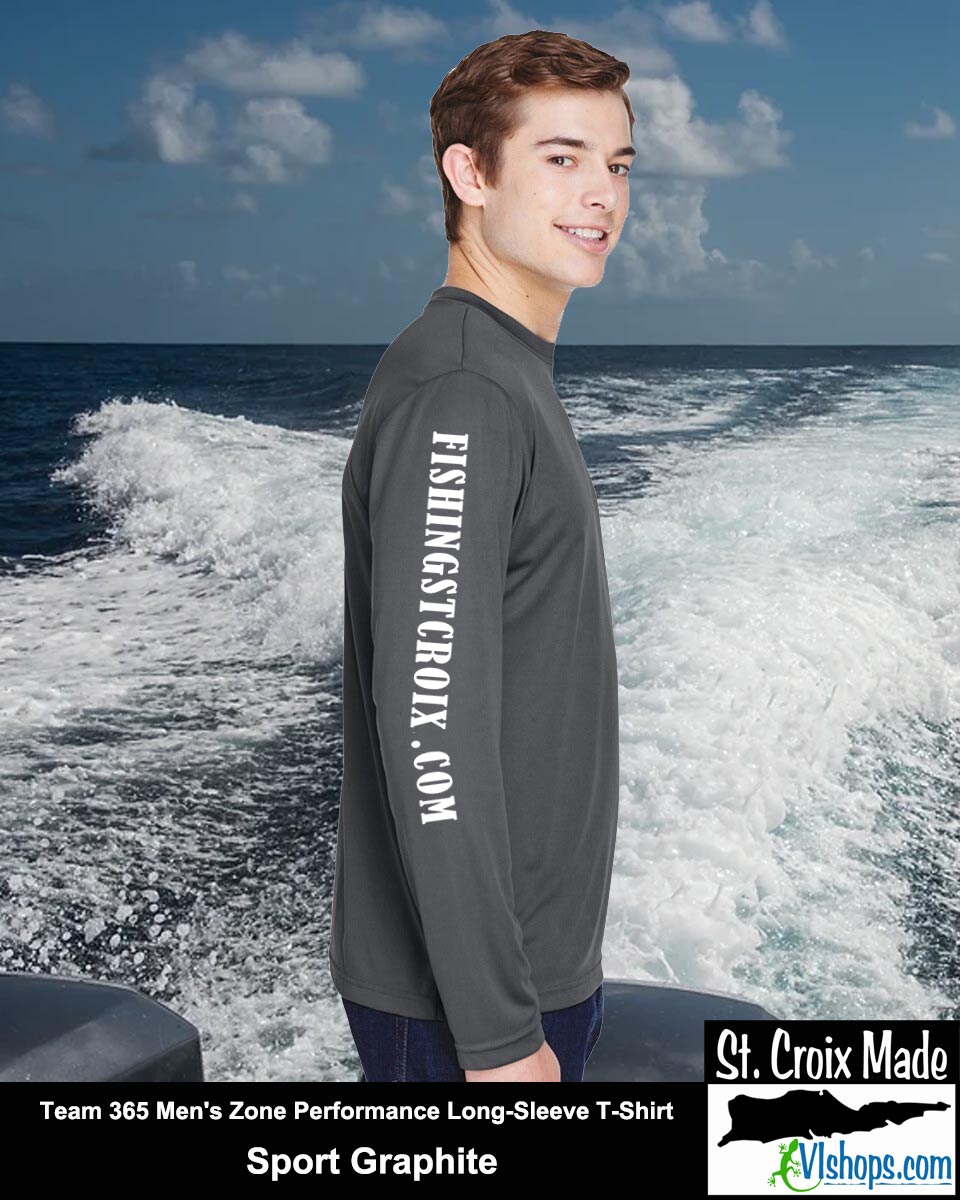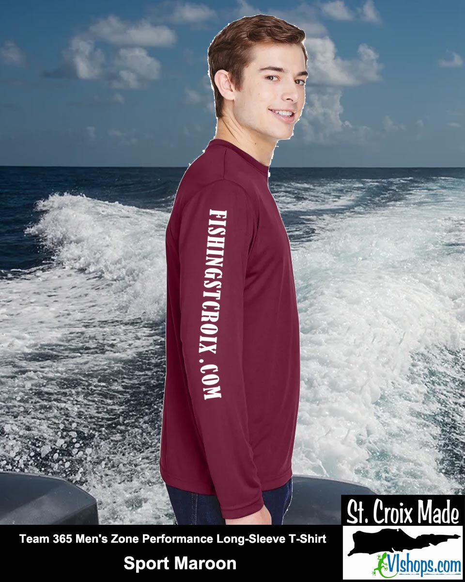 Fishing St. Croix - Front Chest and Full Back - Team 365 TT11L Men's Zone Performance Long Sleeve T-Shirt