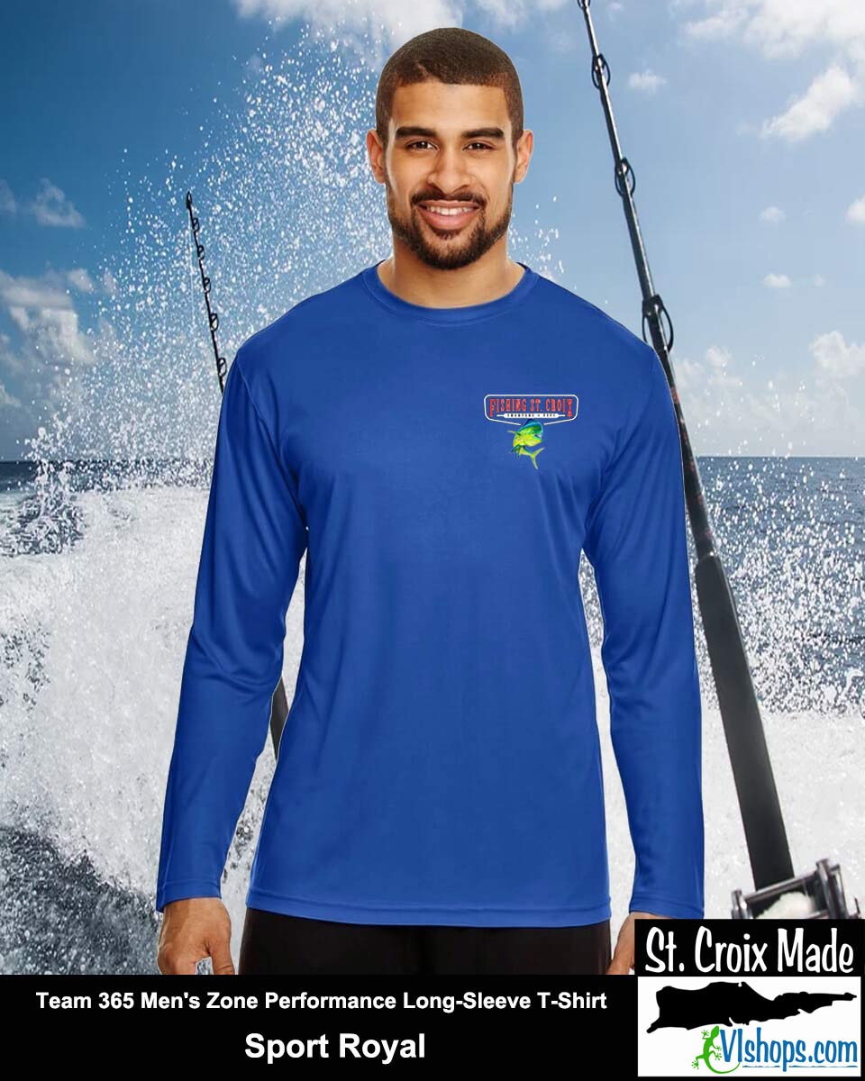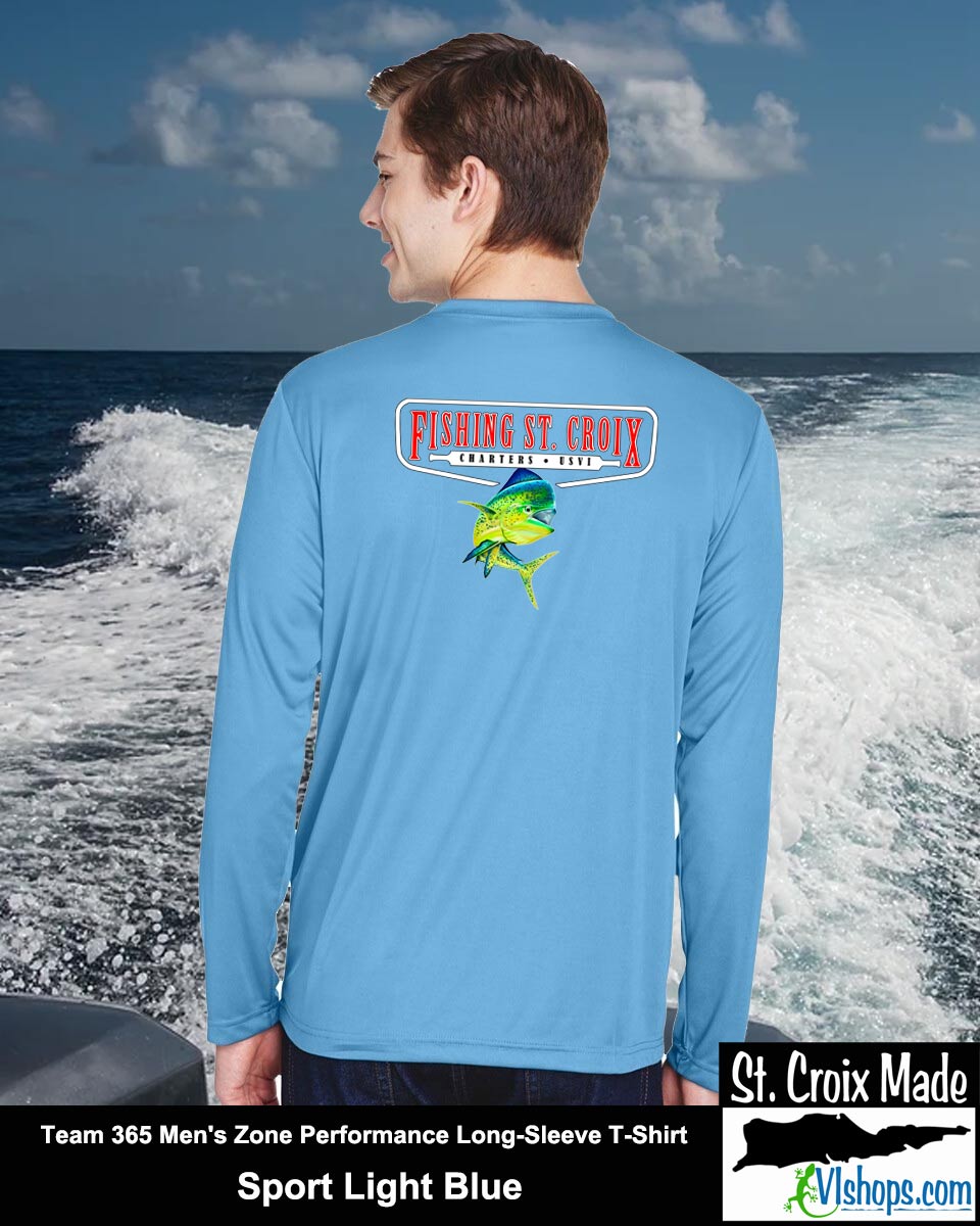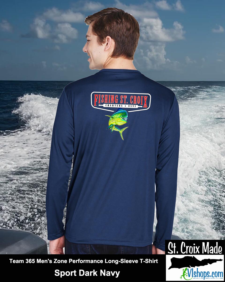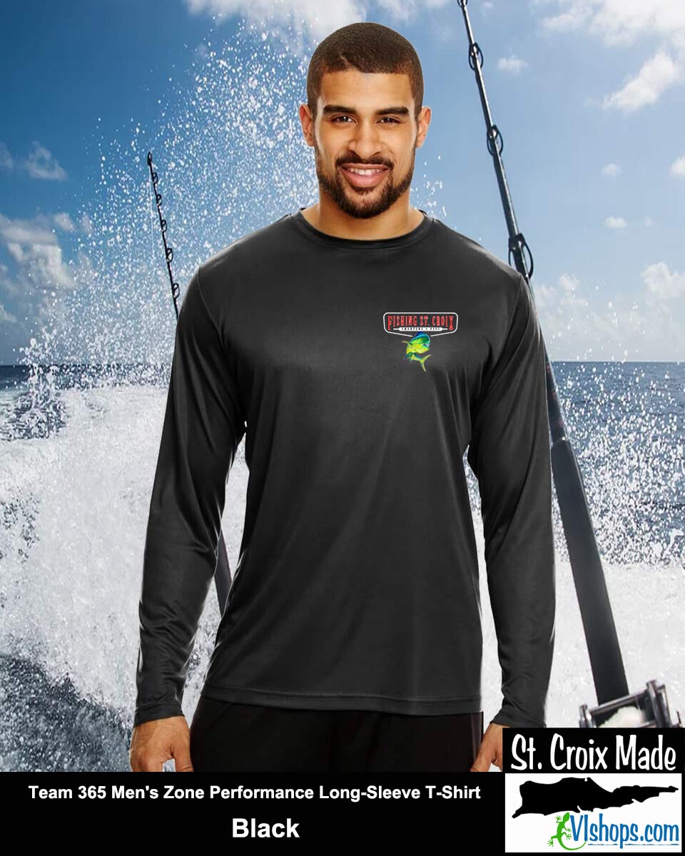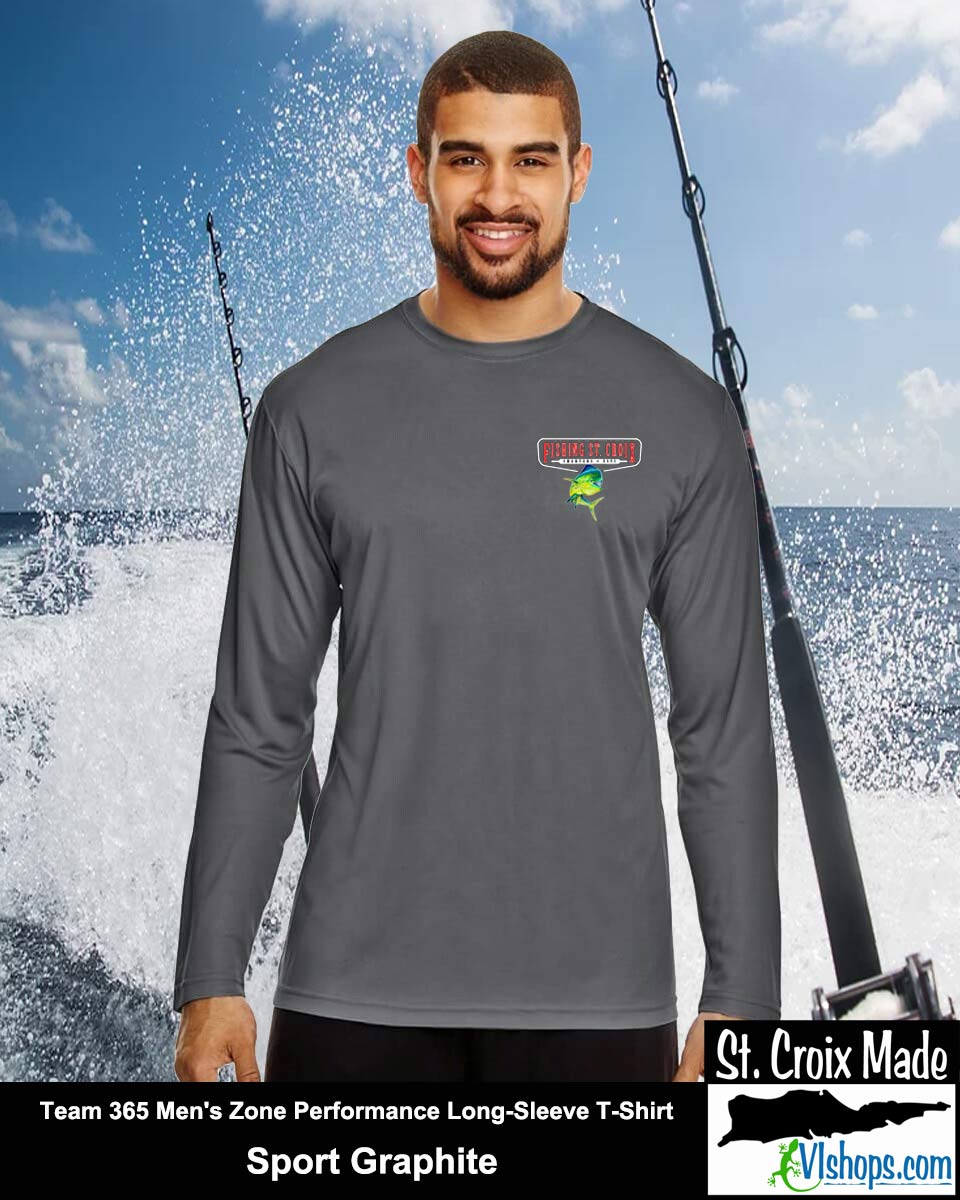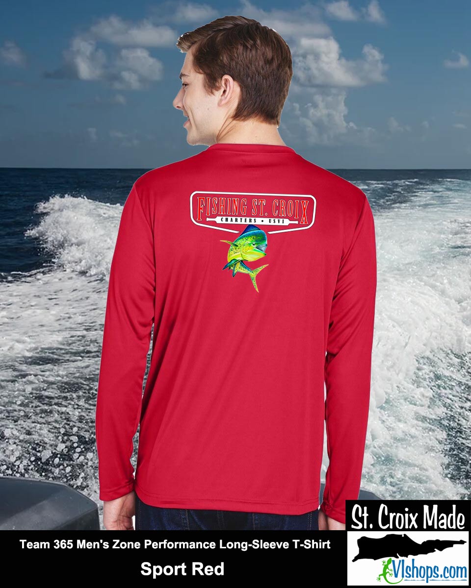 Fishing St. Croix - Front Chest and Full Back - Team 365 TT11L Men's Zone Performance Long Sleeve T-Shirt