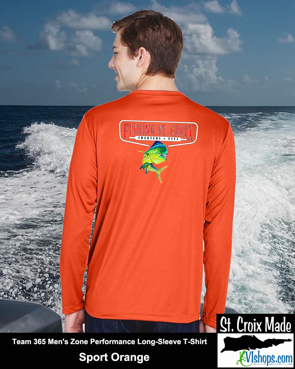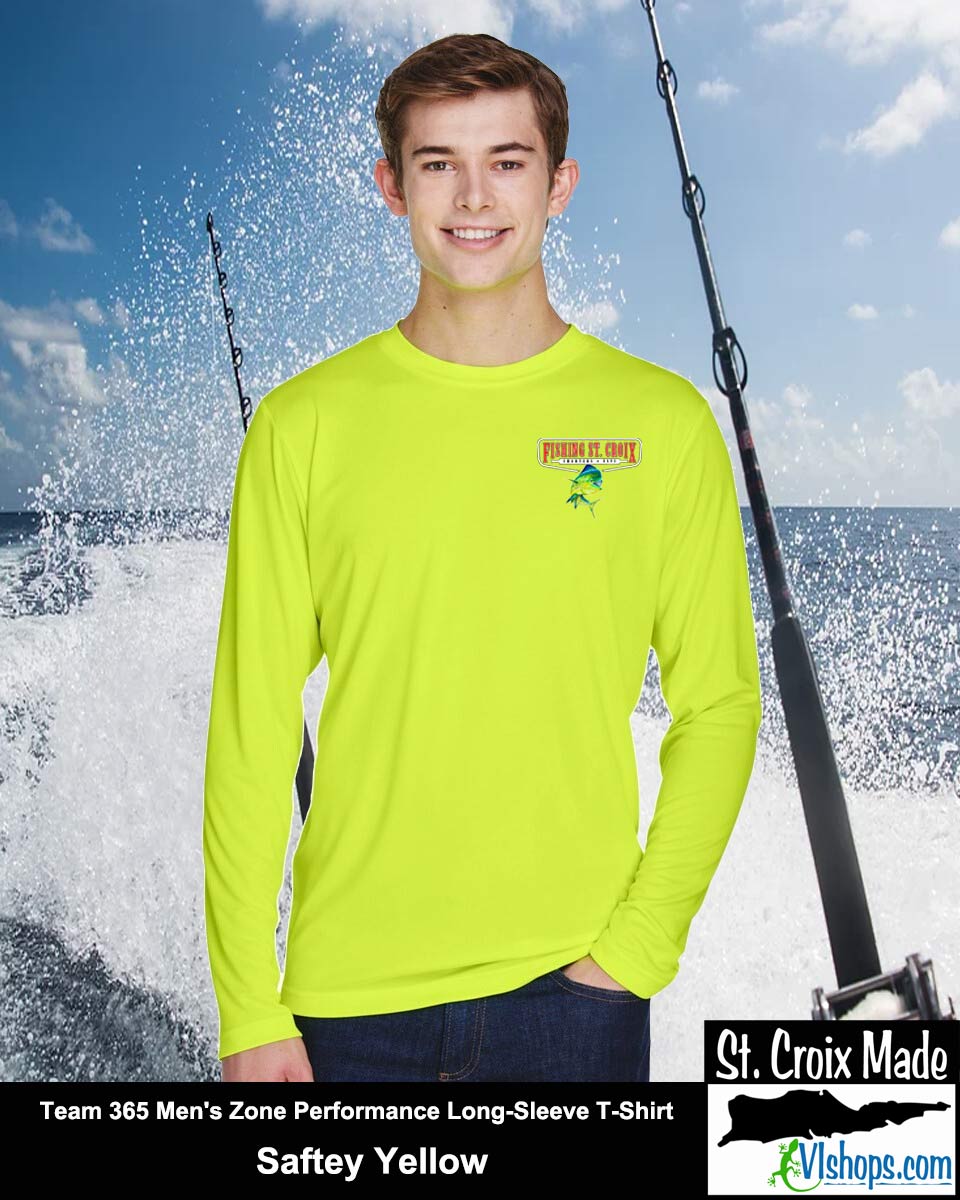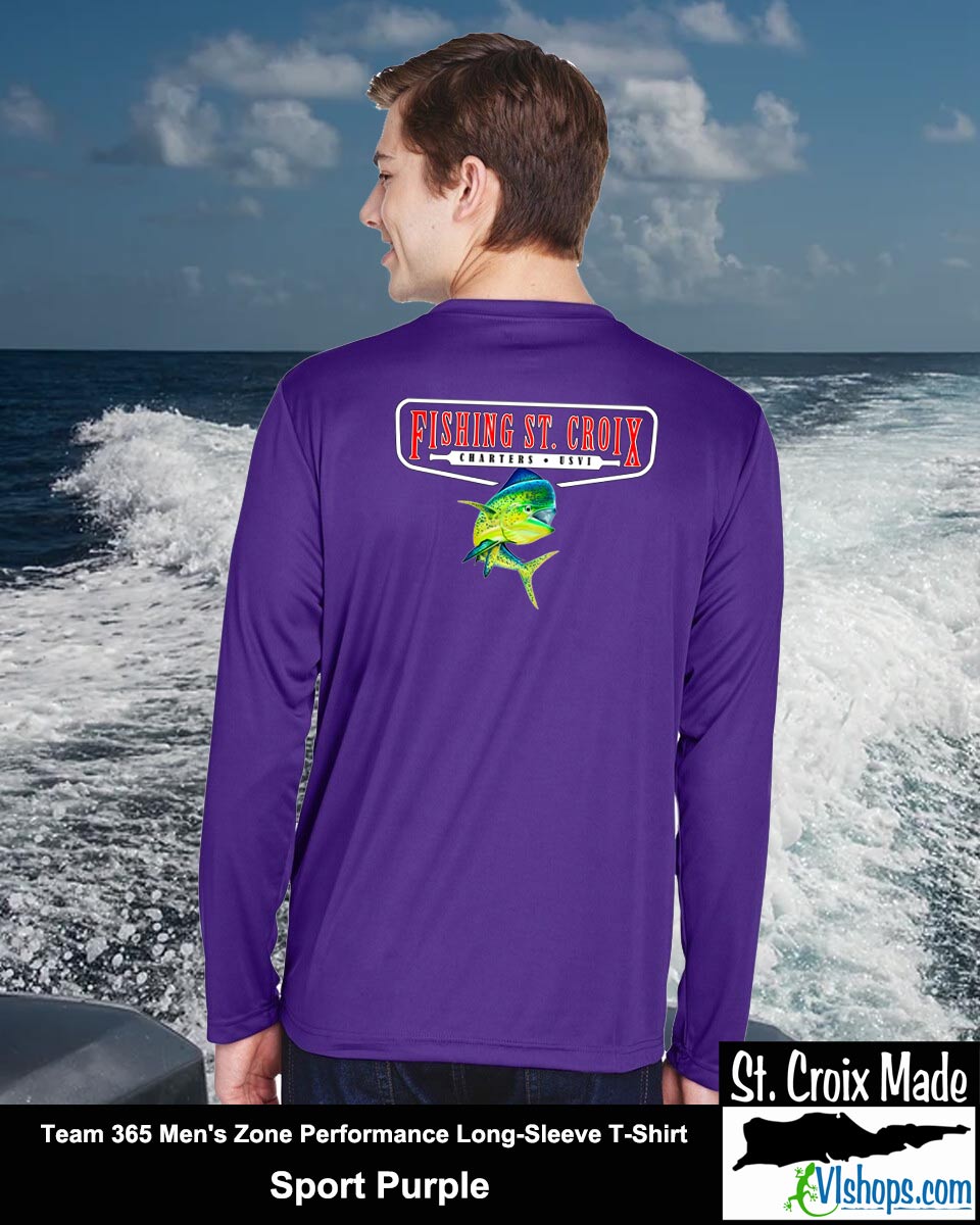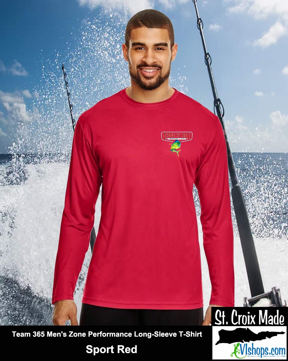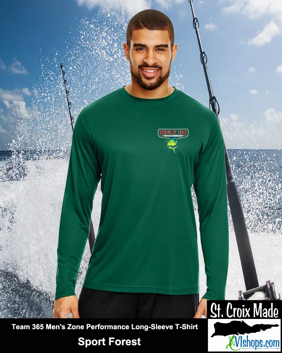 Fishing St. Croix - Front Chest and Full Back - Team 365 TT11L Men's Zone Performance Long Sleeve T-Shirt