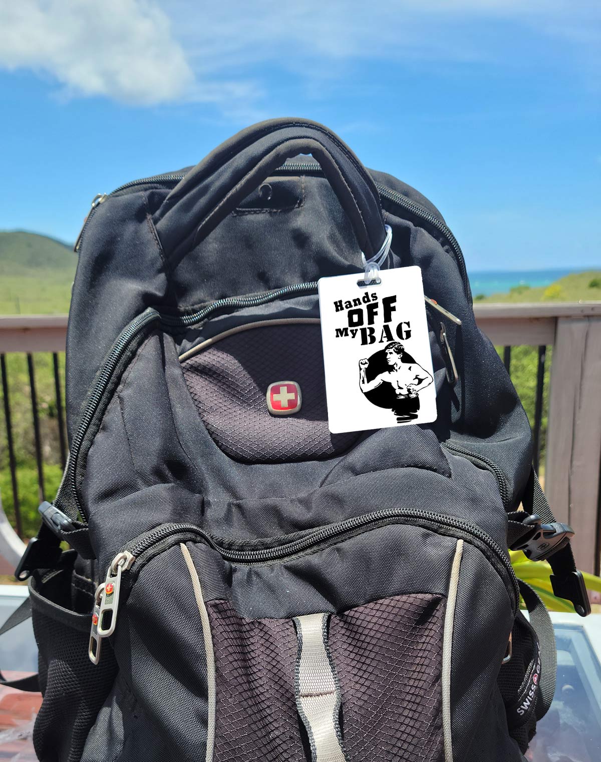 My bag tag doesn't just say 'Hands off my bag,' it's basically my luggage's personal bouncer – with a sense of humor!
