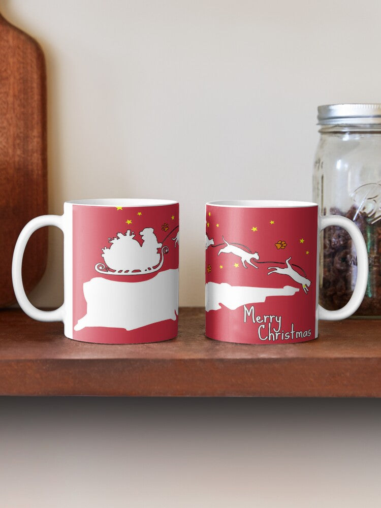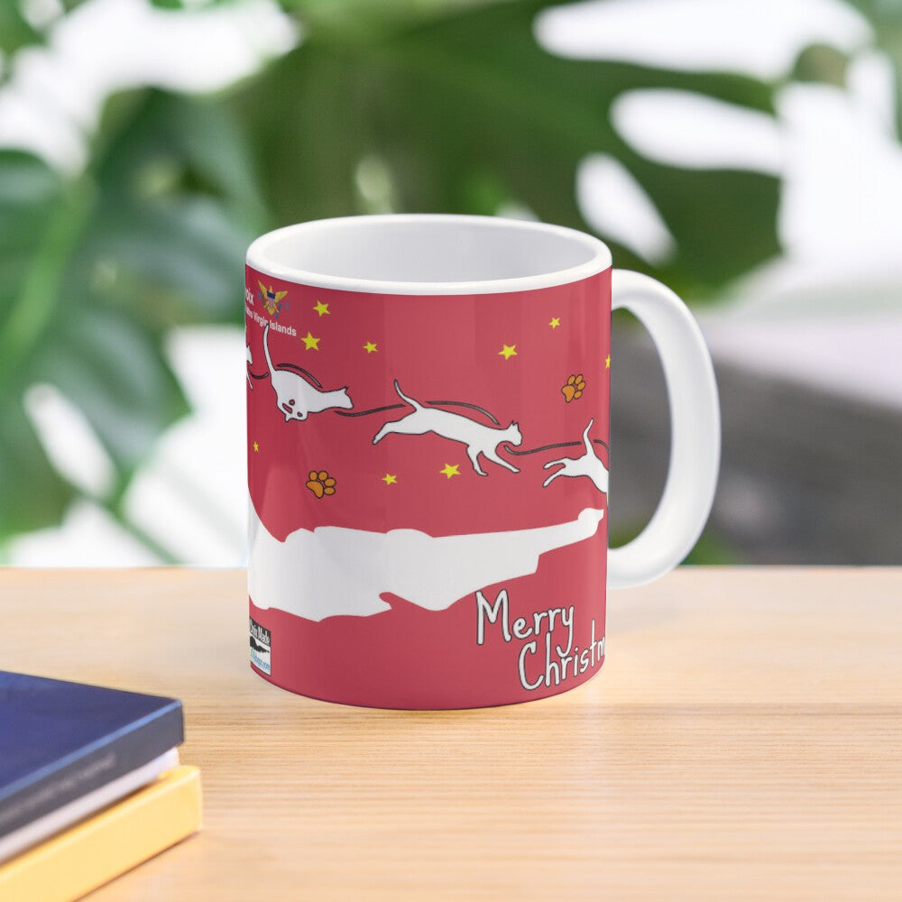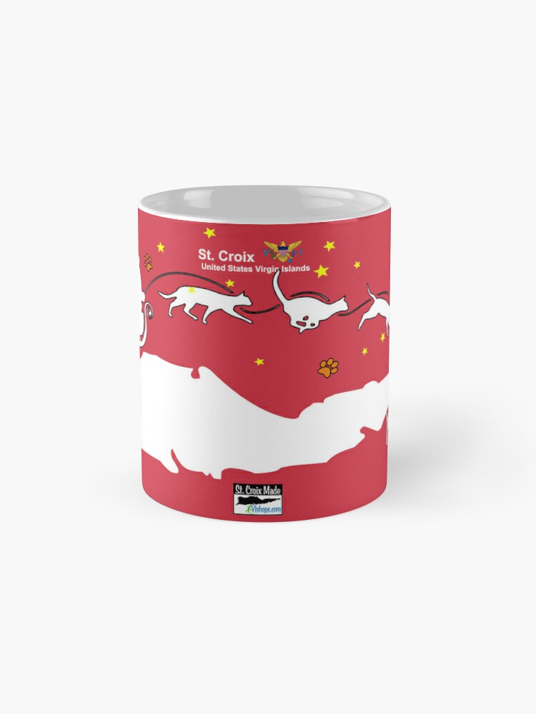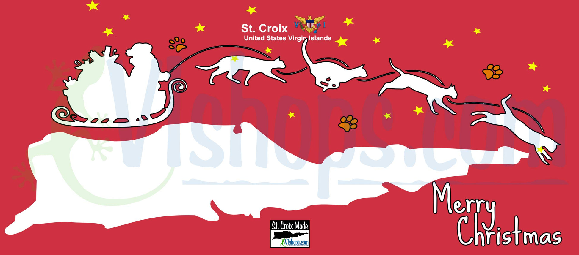 Santa's sleigh flying over St. Croix United States Virgin Islands, guided by the pure hearts of cats and playful kittens, lighting up the night with love and holiday cheer!
