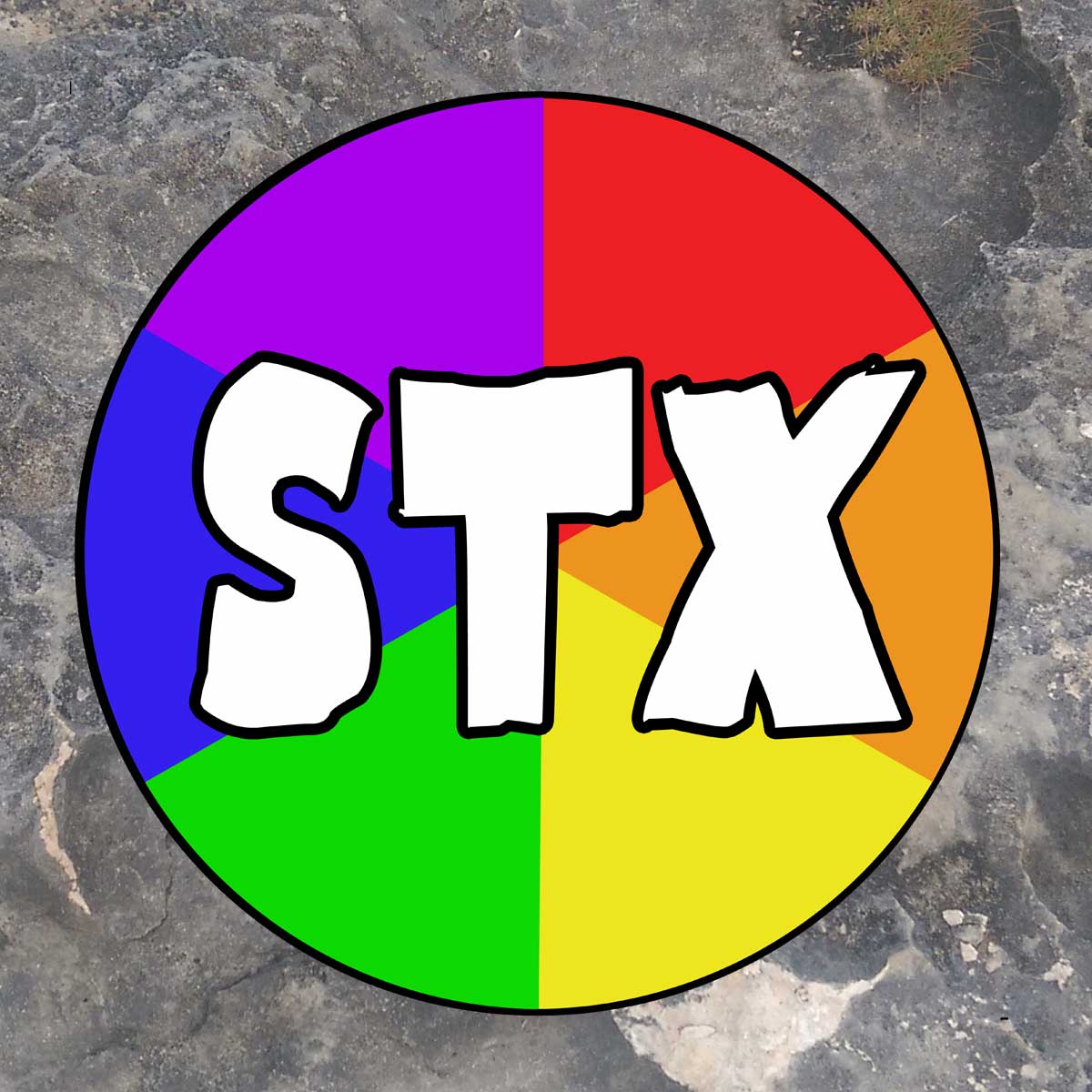 STX Rainbow 3" circle sticker - This is a 3 inch in diameter circle sticker with St. Croix United States Virgin Islands airport code of STX in a rainbow circle.