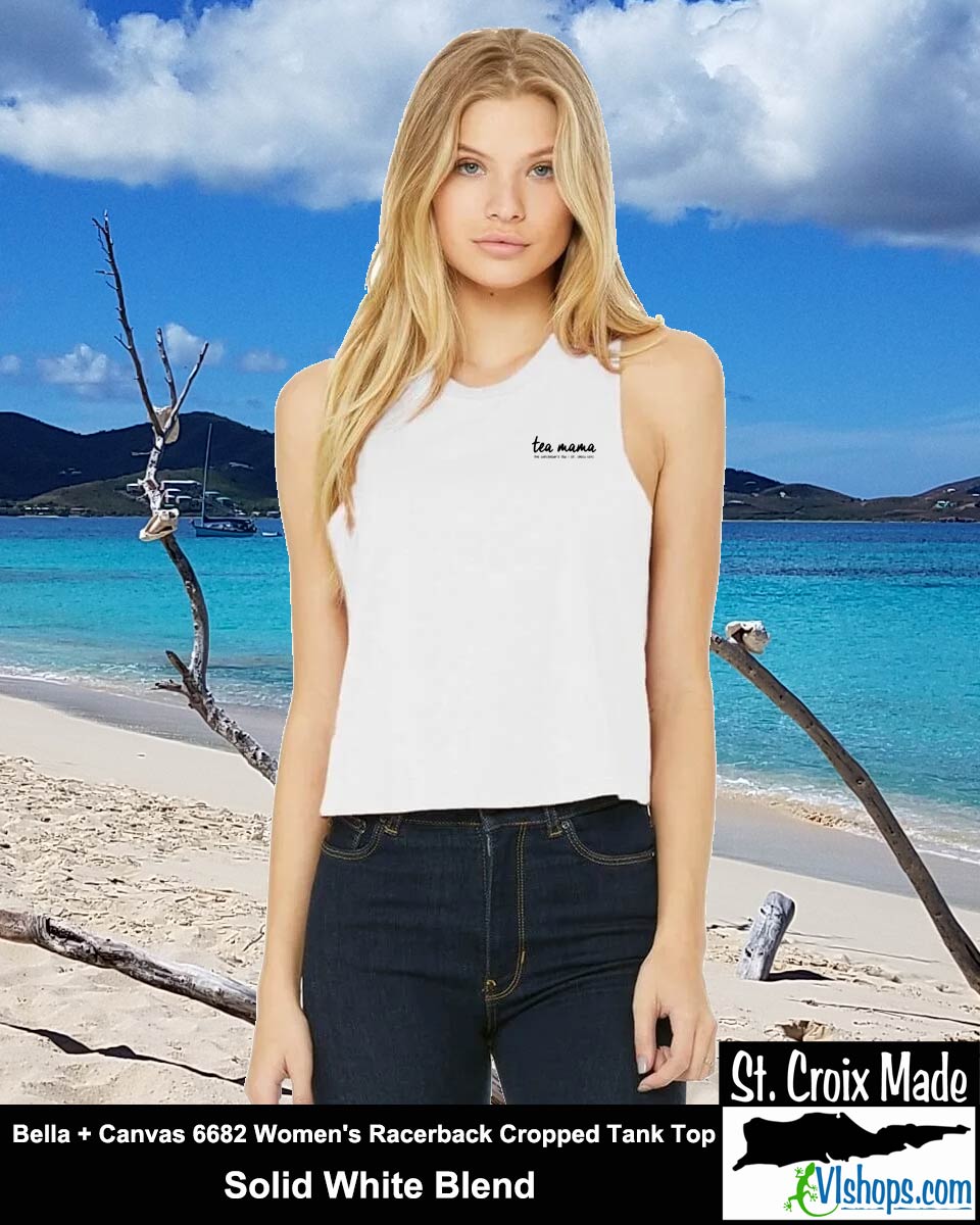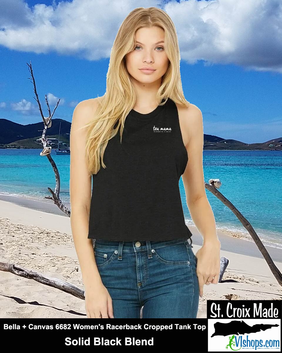 Wearing the Bella + Canvas 6682 Women's Racerback Cropped Tank Top with the "tea mama" chest wording on the front and "tea mama" name on the back is a fashionable and comfortable choice for expressing your love for their tantalizing teas and your individuality. It's a go-to option for a night on the town, relaxing at home, or even a casual tea party with friends.