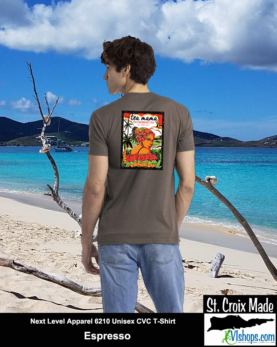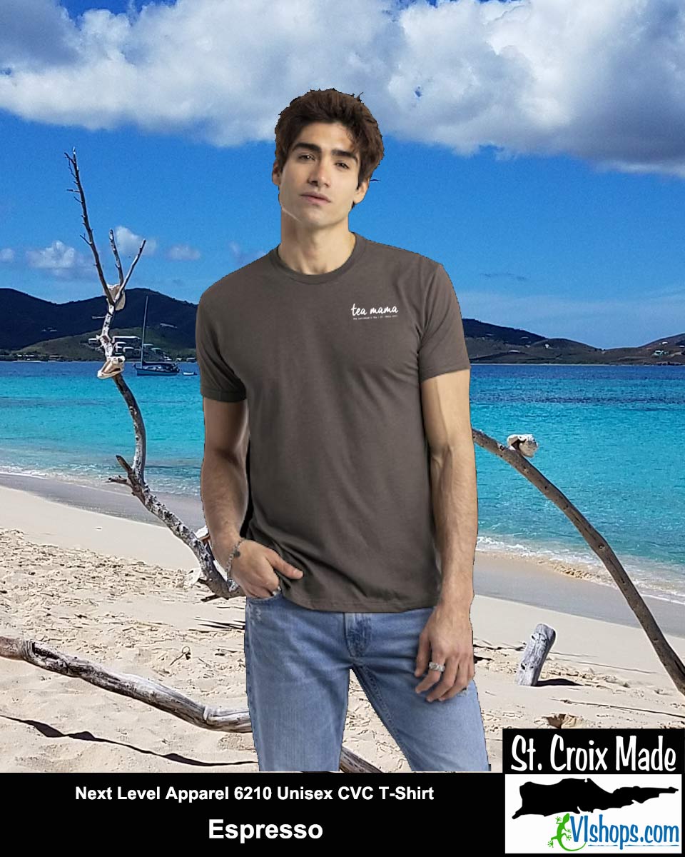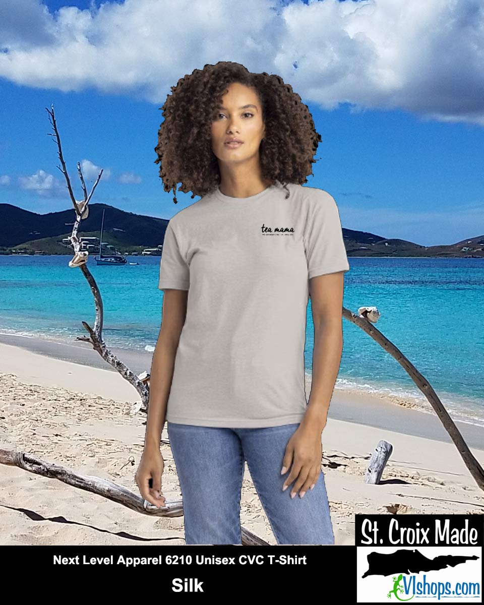 Wearing the Next Level Apparel 6210 Unisex CVC T-Shirt with the "tea mama" lady design on the back and "tea mama" name on the front chest is a fashionable and comfortable choice for expressing your love for their tantalizing teas and your individuality. It's a go-to option for a night on the town, relaxing at home, or even a casual tea party with friends.